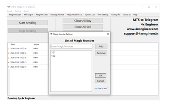 "MT5 to Telegram" is an intuitive software that connects your MetaTrader-5 trading activities directly to your Telegram channels. Designed for traders who need real-time updates on their trading positions, this software ensures you're always informed of your MT5 actions as they happen. Installation is as simple as any standard Windows application, with a seamless setup process. Once installed, "MT5 to Telegram" offers a direct line to your Telegram, sending notifications instantly so you can keep track of orders, trades, and strategies efficiently and effortlessly.
