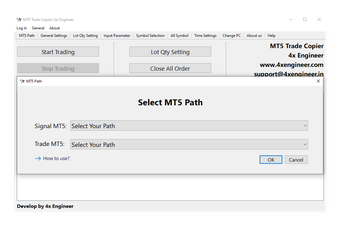 "MT5 Trade Copier" is an innovative software designed to seamlessly replicate orders between two MetaTrader-5 (MT5) accounts. It allows traders to copy trades from a 'Master MT5' account to a 'Slave MT5' account instantly, ensuring synchronization in trading activities. The software features customizable settings including maximum slippage and spread, retry orders, and time configurations. It supports various lot settings such as fixed, auto, or replicating the master's lot size. Advanced options include input parameters like maximum trades, daily profit, and loss limits, alongside flexible symbol selection with 'same as signal' or 'opposite' trade settings. Time settings allow traders to define operational periods, enhancing trade control and efficiency.