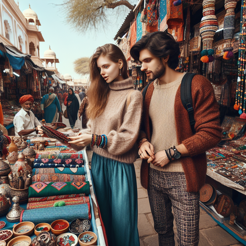 jewelry, and local handicrafts. Her boyfriend, dressed in casual