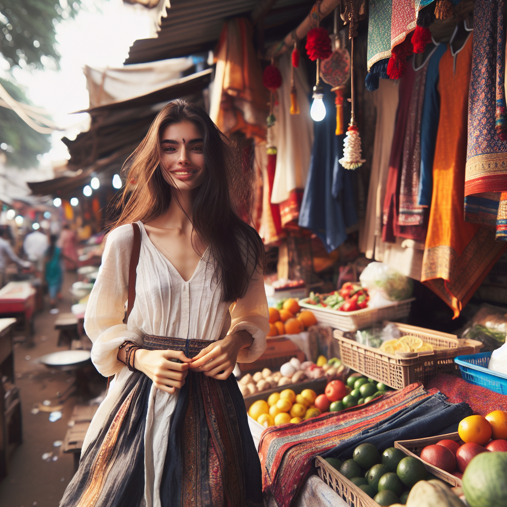 jewelry, and local handicrafts. Her boyfriend, dressed in casual